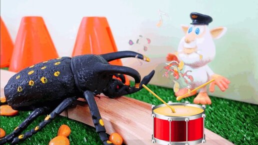 Буба на паровозе. Деревянная железная дорога. Жук на дороге