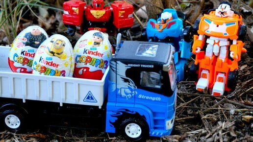 Грузовик везет Тоботам Киндер Сюрпризы. Игрушки для детей