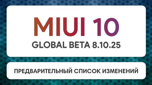 Miui 10 Global Beta 8.10.25 - Предварительный Список Изменений