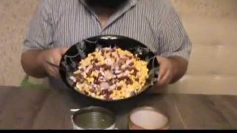 Салат с копченой куриной грудкой, кукурузой и фасолью