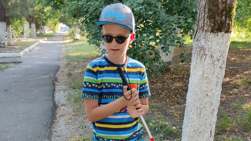 Первая Гошина белая трость. Купили. Тестируем. Гуляем по парку