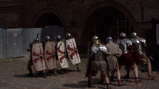 Тренировочный бой римских легионеров показан военно-исторического клубом "9 легион Испании" на фестивале в Москве, на Крутицком подворье