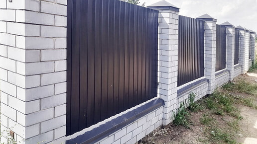 Забор из кирпича и профнастила своими руками. Строим парапет.