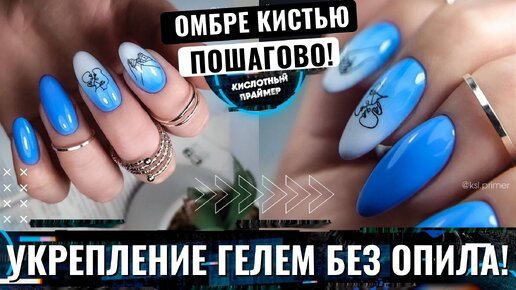 Маникюр самой себе😎 Укрепление гелем без опила🔥 Синий маникюр и градиент кистью♥️