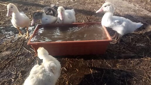 Мускусные утята купаются.