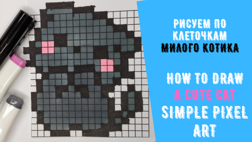 Как нарисовать простой рисунок по клеточкам. Милый серый котенок в стиле пиксель арт