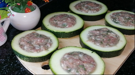Сочные и очень вкусные кабачковые кольца с начинкой, готовлю на обед.