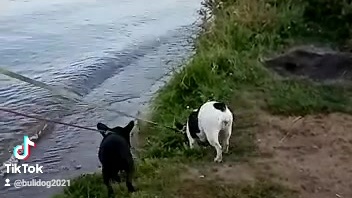 Французский бульдог Лео и Ася знакомятся с большой водой
