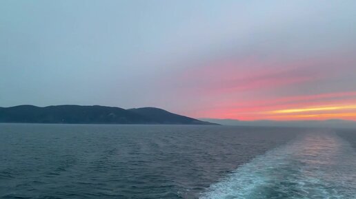 Уникальный вид на закат. Вид с открытого моря. Морская романтика