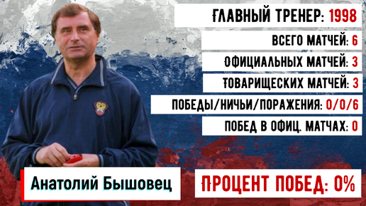 Рейтинг всех тренеров сборной России по футболу по проценту побед (от худшего к лучшему)