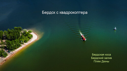 Бердск с квадрокоптера. Бердская коса, Бердский залив, Обское море. Западная Сибирь, Новосибирская область, Россия