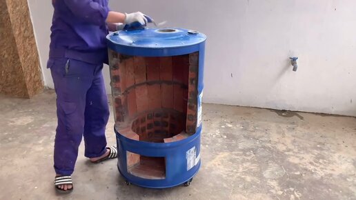 Уличная многоцелевая печь из цемента и железной бочки - хорошая идея