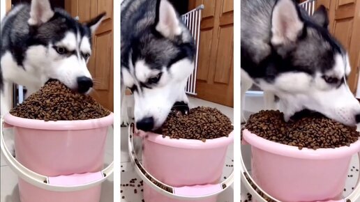 Хаски заглатывает еду вёдрами. Прикольные моменты с животными из Тик Ток