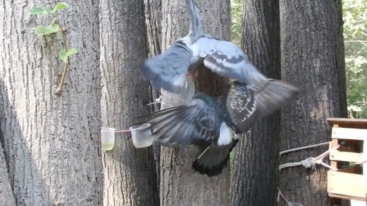 Голуби наловчились есть из чужой кормушки