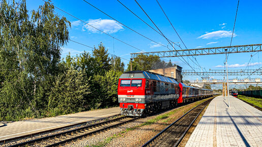 «Пошла Ласточка на Ржев!». Тепловоз ТЭП70БС-323 с электропоездом ЭС1П-009 «Ласточка» отправляется со станции Волоколамск