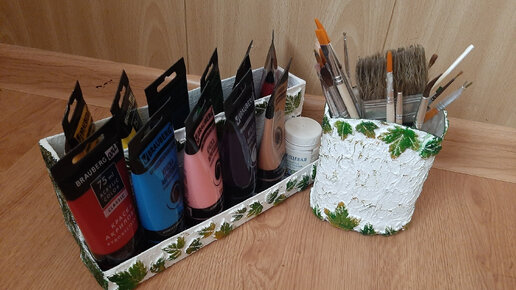 Сделала пару для органайзера с красками. Подставка для кистей.