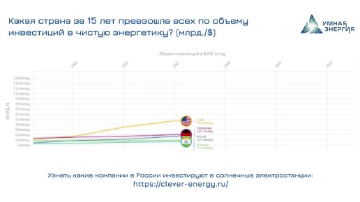 Какая страна превосходит всех по инвестициям в чистую энергетику в мире?