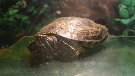 Показываю красноухую черепаху в музее Хабаровска