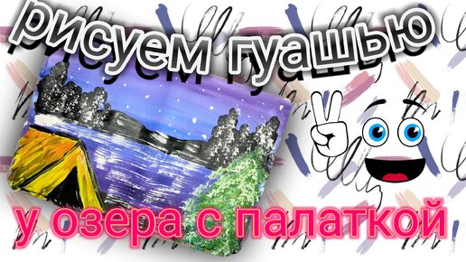 рисунок " у озера с палаткой"/ легкий рисунок красками гуашь