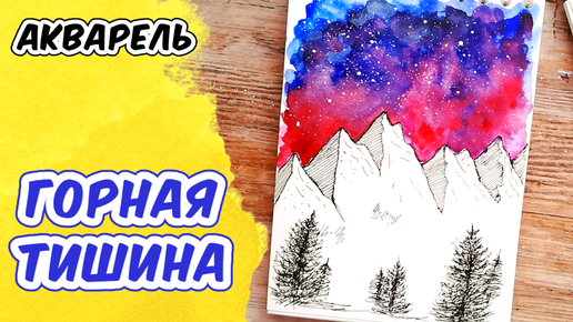 Как нарисовать КОСМОС и ГОРЫ акварелью | Урок рисования для начинающих