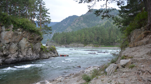 Показываю живописный вид реки, впадающей в Катунь на Алтае