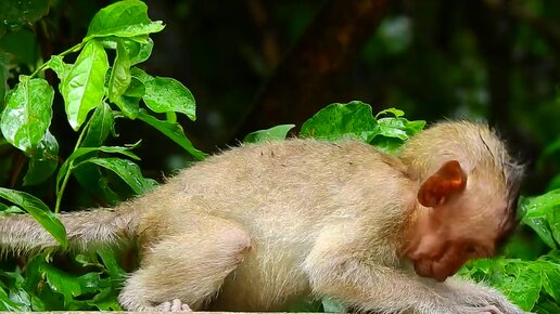 Малыш макака, хочет понравится новой маме
