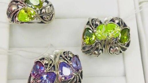 Базовый ювелирный гардероб комплект "ЛИСТОПАД". Микс цветных камней. Завод Вега