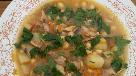 Остатки сладки: гороховый суп на курином бульоне с шампиньонами