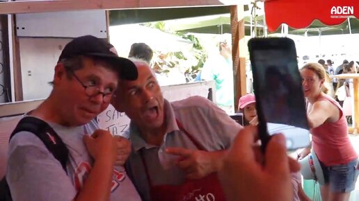 Не могла понять, почему так много людей столпилось. Когда увидела, то поняла. Дедуля вкусно готовит, так еще и людей развлекает