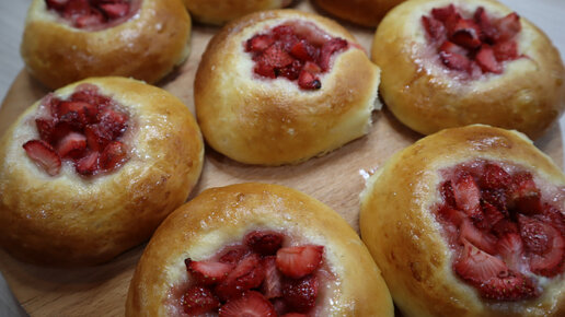 Очень пушистые,нежные,сладкие с ароматной клубникой булочки