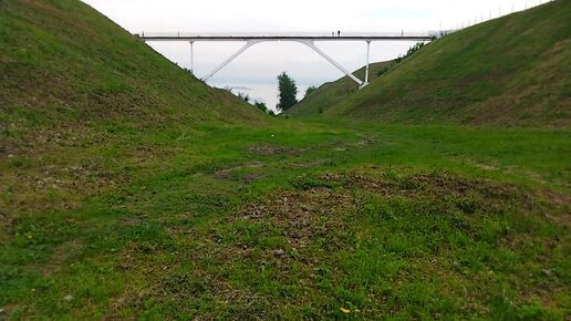 Вид на уникальный пешеходный мост над Сергиевсим оврагом в Нижнем Новгороде