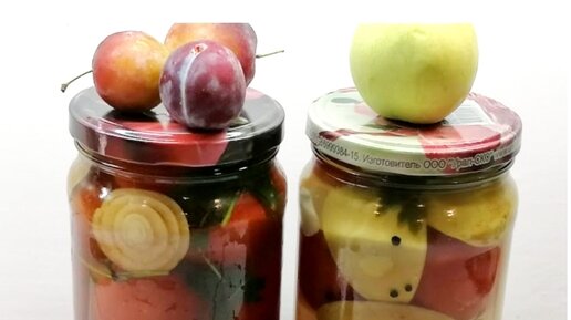 Консервация №9- Маринованные помидоры с яблоками и сливами Съедаются мгновенно Рассол выпивается