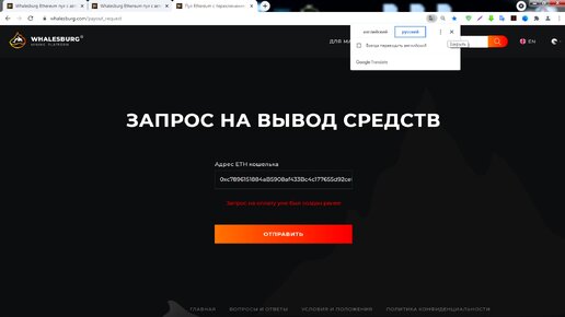 Pool Whalesburg - запрос на вывод средств.