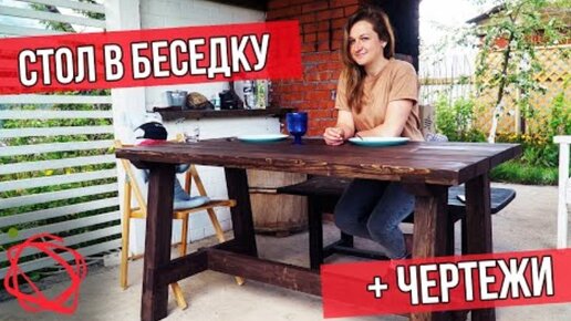 Самая удачная конструкция стола в беседку. Не шатается и ногам не мешает, показываю чертежи и как сделать самому