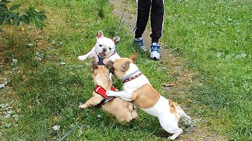 Французские бульдоги Варя и Пельмешка приняли в свою стаю щенка