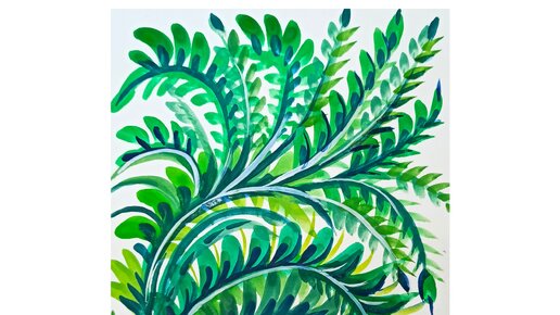 Как нарисовать узоры зеленой гуашью и плоской кистью №6.