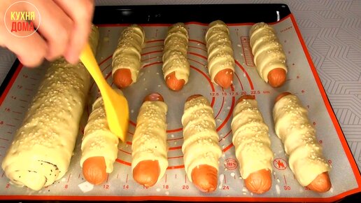 Сосиска в тесте к чаю из готового слоёного дрожжевого теста! Sausage in dough for tea from ready-made puff yeast dough!