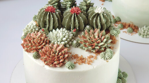 Как легко сделать кактусы из крема для украшения торта?