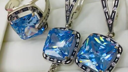 Топаз голубой (фианит)- в серебряном украшении "ЛЕДИ". Завод Циркон.