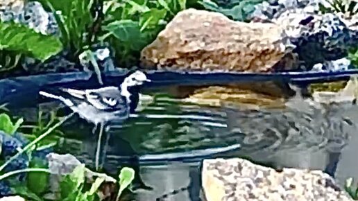 Видели, как забавно купается Трясогузка в пруду? Как приспособить садовый прудик для маленьких птиц
