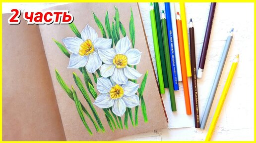 Листья нарцисса: рисуем и раскрашиваем цветными карандашами! 2 часть