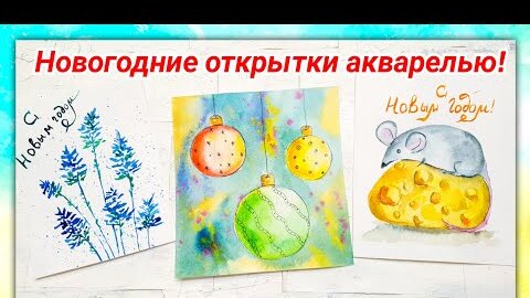 Рисуем онлайн Новогодние Отрытки акварелью!