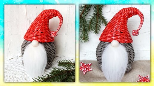 Дед Морозик из газетных трубочек! Подробный урок по плетению!