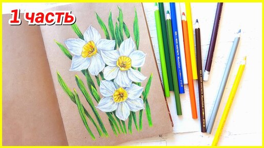 Нарцисс: раскрашиваем цветными карандашами! 1 часть!