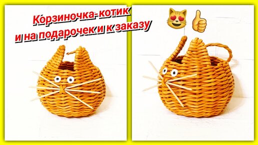 Плетём корзиночку-котика на подарки😻 Из газетных грубочек!