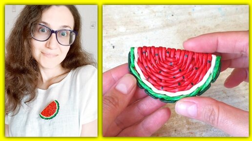 Сочная брошка Арбузик из газетных трубочек