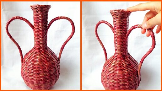 Плетение кувшина с ручками из газетных трубочек! Подробный Мк!