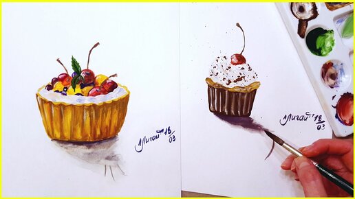 🎨Рисуем пирожные гуашью! Запись трансляции!