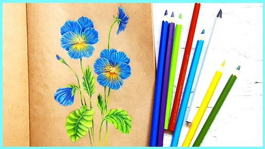 Анютины глазки: рисуем и раскрашиваем цветными карандашами! Подробно!