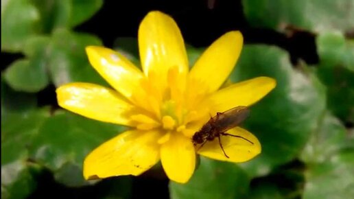 Макро мир - Мушка питается нектаром. Крупный план.